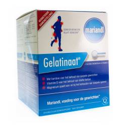 Mariandl Gelatinaat® est un complément alimentaire contenant du calcium, du magnésium, de la vitamine D et du manganèse. Mariandl Gelatinaat® contient également de l'hydrolysat de collagène. L'hydrolysat de collagène est une bonne source d'acides aminés glycine et proline. Ces acides aminés sont présents en forte concentration dans les tissus conjonctifs, et donc également dans le cartilage. Le calcium et le magnésium contribuent au fonctionnement normal des muscles ; la vitamine D contribue au maintien d'une ossature normale ; le manganèse contribue à la formation normale des tissus conjonctifs, à la protection des cellules contre le stress oxydatif et est bon pour la production/construction du cartilage dans les articulations.