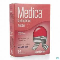 Medica comprimés pour la gorge fraise est un comprimé à sucer pour une action locale dans la bouche et la gorge. Il est un désinfectant et analgésique local. Medica comprimés pour la gorge fraise est indiqué dans: