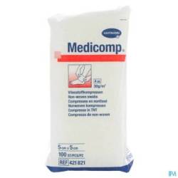 Compresse en non-tissé hydrophile, 70% de viscose et 30% de polyester. Sans produit liant ni correcteurs optiques. Très absorbante, douce et aérée, disponible en plusieurs épaisseurs, non-stériles.