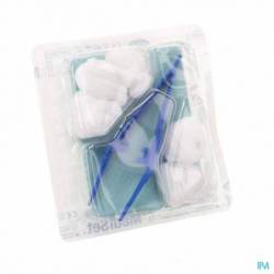 Sets de pansement dans un blister rigide 4 alvéoles :- peut servir de plateau - compartiment long permettant de garder la pince stérile pendant la procédure de soins - petite alvéole pour contenir des liquides Contenu: 5 Tampons en gaze, T3 prune 1 Champ 38 x 45 cm 1 Pince anatomique en polypropylène 12,5 cm bleu