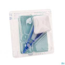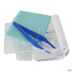 Sets de pansement dans un blister rigide 4 alvéoles :- peut servir de plateau - compartiment long permettant de garder la pince stérile pendant la procédure de soins - petite alvéole pour contenir des liquides Contenu: 5 compresses gaze 5 x 5 cm (8 plis) 1 pince anatomique en polypropylène 12,5 cm bleu 1 champ 38 x 45 cm