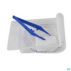 Sets de pansement dans un blister rigide 4 alvéoles :- peut servir de plateau - compartiment long permettant de garder la pince stérile pendant la procédure de soins - petite alvéole pour contenir des liquides Contenu: 5 compresses gaze 5 x 5 cm (8 plis) 1 pince anatomique en polypropylène 12,5 cm bleu