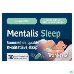 Mentalis Sleep est une formulation unique présentée sous forme de comprimés à deux couches (comprimés double-action) qui combine une libération immédiate de la mélatonine, de la mélisse et d'une première partie de l'ashwagandha et une libération prolongée de la deuxième partie de l'Ashwagandha. Par conséquent, Mentalis Sleep agit à la fois pendant l'endormissement et le sommeil profond pour une efficacité optimale. Aucun cas d'accoutumance ou de somnolence au réveil n'a été rapporté au sujet des ingrédients actifs de Mentalis Sleep.