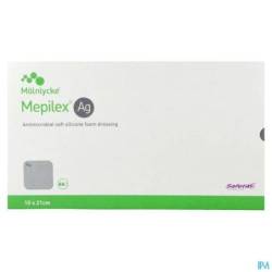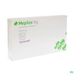 Mepilex Ag est un pansement hydromousse employé dans le traitement des plaies chroniques ou aiguës modérément exsudatives (ulcère veineux de la jambe, brûlures, etc.) qui présentent des signes locaux d'infection. Les plaies infectées sont douloureuses et requièrent un traitement adapté. Afin de minimiser la douleur du patient lors des renouvellements de pansements, Mepilex Ag bénéficie de la technologie Safetac1 Il possède en outre une action antimicrobienne avec sa technologie à base d'argent, pour traiter l'infection. Les études cliniques5 ont démontré que Mepilex Ag guérit les brûlures plus rapidement que le sulfadiazine d'argent, à moindre coût, et occasionne moins de douleur.