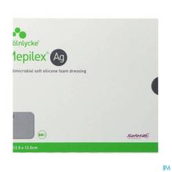 Mepilex Ag est un pansement hydromousse employé dans le traitement des plaies chroniques ou aiguës modérément exsudatives (ulcère veineux de la jambe, brûlures, etc.) qui présentent des signes locaux d'infection. Les plaies infectées sont douloureuses et requièrent un traitement adapté. Afin de minimiser la douleur du patient lors des renouvellements de pansements, Mepilex Ag bénéficie de la technologie Safetac1 Il possède en outre une action antimicrobienne avec sa technologie à base d'argent, pour traiter l'infection. Les études cliniques5 ont démontré que Mepilex Ag guérit les brûlures plus rapidement que le sulfadiazine d'argent, à moindre coût, et occasionne moins de douleur.