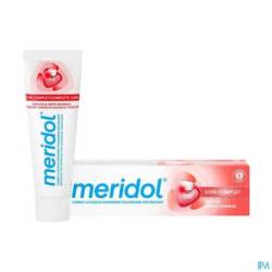 Prenez soin de vos gencives et dents sensibles grâce au dentifrice meridol® Soin Complet Gencives & Dents Sensibles. Ce dentifrice spécial gencives a été conçu par des spécialistes pour cibler et combattre la cause principale de l'irritation et du saignement occasionnel des gencives*. Il a également été cliniquement prouvé que ce dentifrice apaise les gencives sensibles et protège les dents sensibles et que sa formule bi-active efficace a un effet antibactérien rapide et durable**.
