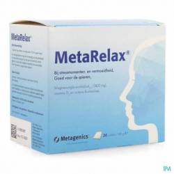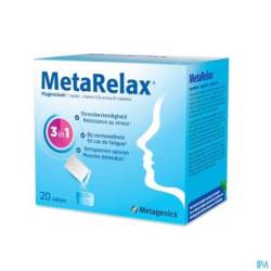 MetaRelax® est un complexe de magnésium complet à utiliser pour soutenir les fonctions psychologiques comme lors de moments de stress (folate), en cas de fatigue (folate, magnésium et vitamine B6) et pour soutenir les muscles (magnésium et vitamine D).