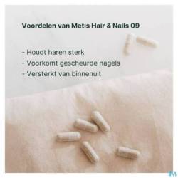 Metis Hair & Nails fournit les éléments de base essentiels pour des cheveux forts, brillants et plus volumineux. Il aide également à lutter contre la chute des cheveux et renforce les ongles. Cela est dû aux nutriments naturels et puissants que Metis Hair & Nails 09 fournit. Moins de perte de cheveux ? Plus de confiance en soi.