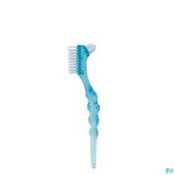 Brosse à manche ergonomique pour le nettoyage de votre prothèse dentaire.