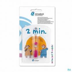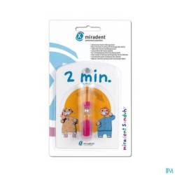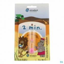 Les dentistes recommandent de prendre deux minutes pour un brossage approfondi de votre dentition. Ce sablier pratique de Miradent est l'idéal pour motiver vos enfants à se brosser les dents. Grâce à sa ventouse, le sablier se fixe facilement sur toute surface lisse, p. ex. sur le miroir au-dessus du lavabo.
