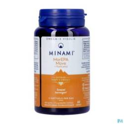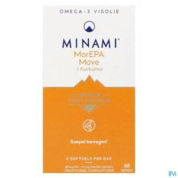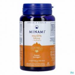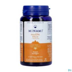 MorEPA Move est une formule Minami pour des mouvements fluides, combinant une forte dose (90%) d'oméga 3 (445 mg d'EPA + 136 mg de DHA) avec du curcuma, de la vitamine C.