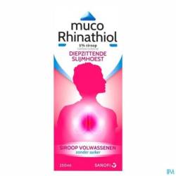 MUCO RHINATHIOL 5 % sirop adultes MUCO RHINATHIOL 5 % sirop adultes, sans sucre - Ces formes ne doivent pas être utilisées chez l'enfant de moins de 15 ans.