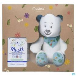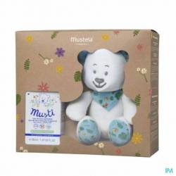 Ce coffret est composé de l'emblématique Eau de soin Musti 50ml et de la peluche Musti.
