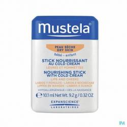 Le Stick nourrissant au Cold cream, à la cire d'abeille bio, est idéal pour les zones sèches et exposées aux agressions extérieures comme les lèvres et les pommettes des bébés et des enfants, dès la naissance(1). Ce baume nourrit et protège durablement la peau.