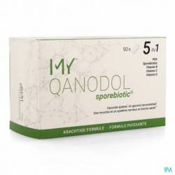 MY®QANODOL contient par capsule 350 mg de LEVAGEN+ (= bioéquivalent à 600 mg de PEA), 1,25 milliard d'UFC de bactéries sporulées ( Bacillus coagulans et Bacillus subtilis ), 100 UI de vitamine D3 (50 % d'AR), 25 mg de vitamine C ( 31,25 % d'AR), 1,5 mg de vitamine B6 (107 % d'AR), 100 μg d'acide folique (50 % d'AR) et 0,75 μg de vitamine B12 (30 % d'AR).