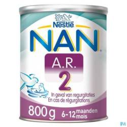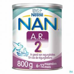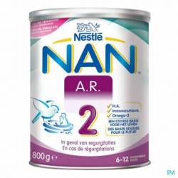 NAN® A.R.2 doit être utilisé sous contrôle médical. NAN® A.R.2 convient à l'alimentation particulière des nourrissons ayant atteint l'âge d'au moins six mois. Le produit ne peut pas être utilisé comme seule source d'alimentation. Il ne peut être utilisé comme substitut du lait maternel pendant les six premiers mois de la vie. NAN® A.R.2 ne peut pas être administré par voie parentérale. Peut être utilisé jusqu'à 24 mois.