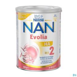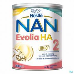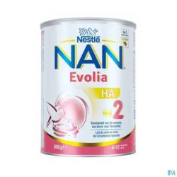 Nestlé NAN Evolia HA 2 est un lait de suite destiné aux bébés de plus de 6 mois qui passent du sein au biberon et qui ont un risque d'allergie, en relais ou en complément de l'allaitement maternel. NAN Evolia HA 2 contribue à donner des bases solides pour la vie, notamment grâce aux vitamines A et C, qui soutiennent son système immunitaire, et au fer, qui participe à son développement cognitif normal. Il contient les meilleures protéines, des vitamines A et C et du fer.