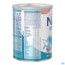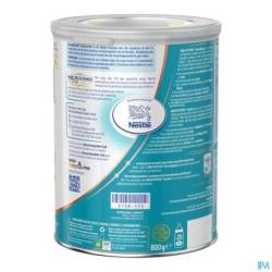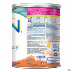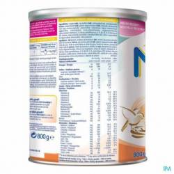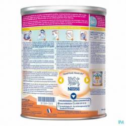 Ingrédients : lait écrémé, huile de tournesol à haute teneur en acide oléique, fécule de pomme de terre, lactosérum déminéralisé (lait), lactose, perméat de lactosérum (lait), galacto-oligosaccharides (lait), huile de colza à faible teneur en acide érucique, huile de tournesol, citrate de calcium, amidon de maïs, huile de poisson, citrate de potassium, émulsifiant : lécithine desoja; phosphate de calcium, fructo-oligosaccharides, chlorure de magnésium, citrate de sodium, vitamines (C, E, niacine, acide pantothénique, A, B1, B6, B2, D, K, acide folique, B12, biotine), chlorure de sodium, sulfate ferreux, sulfate de zinc, régulateur d'acidité : Acide citrique ; culture de bifidus (BL), sulfate de cuivre, sulfate de manganèse, iodure de potassium, sélénate de sodium.