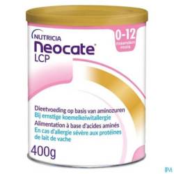 Neocate LCP est une denrée alimentaire destinée à des fins médicale spéciales, spécialement développé pour les nourrissons souffrant d'allergie aux protéines de lait de vache, de polyallergies alimentaires ou d'autres indications pour lesquelles une diète élémentaire est recommandée.Neocate LCP est totalement exempt de protéines de lait de vache. L'alimentation est faite à base d'acides aminés libres. Les acides aminés sont les éléments constitutifs des protéines, seul le système immunitaire ne peut pas répondre à ces acides aminés car ils sont trop petits. De cette manière, Neocate LCP aide à soulager les symptômes d'allergie aux protéines de lait de vache. A utiliser sous contrôle médical, après avoir envisagé toutes les options possibles notamment l'allaitement maternel.
