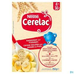 Nestlé CERELAC ce sont des céréales biscuitées déjà écrasées, ce biscuit est donc facile à doser et se mélange facilement à la panade de fruits pour pour introduire en douceur le gluten dans l'alimentation de votre bébé. Il offre une variation idéale au pain et est riche en Calcium, et Vitame D et en Zinc. Son apport important en fer couvre déjà 50% de l'apport journalier recommandé en fer. Le fer contribue au système immunitaire et au développement cognitif de votre bébé.