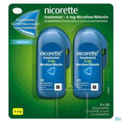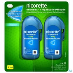 Nicorette® Freshmint Comprimés à sucer réduit discrètement l'envie de fumer. Partout, à tout moment. Ce substitut nicotinique sous forme de comprimés à sucer est particulièrement adapté aux fumeurs qui souhaitent un moyen discret de contrôler leur envie de fumer. Recommandé aux personnes qui fument 20 cigarettes ou moins par jour. Le double goût frais — sans sucre — de la menthe assure une haleine fraîche à tout moment de la journée. Nicorette® Freshmint Comprimés à sucer réprime les symptômes de sevrage et constitue une méthode efficace pour arrêter de fumer, tant immédiatement que progressivement. Combinez-le avec votre volonté et Nicorette® Freshmint Comprimés à sucer et faites un pas important vers une vie sans tabac.