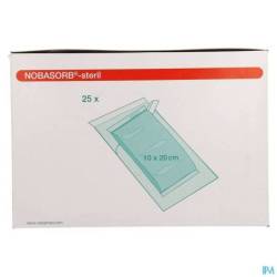 Le pansement hautement absorbant NOBASORB® est doté sur sa face arrière d'un non-tissé bleu, impénétrable aux liquides. Il est rempli d'un corps extrêmement absorbant et est utilisé en cas de plaies fortement exsudatives, infectées ou chroniques. La compresse absorbante peut également être utilisée dans le cas de troubles de la cicatrisation des plaies. Les pansements absorbants sont emballés individuellement et sont stériles.