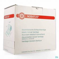 Le bandage tubulaire blanc, à élasticité permanente, sert de sous-couche pour protéger la peau sous des bandages rigides moulés en plâtre ou en matière synthétique. Grâce à son énorme élasticité, NOBATUB® peut soutenir les ligaments et la musculature après des blessures sportives. Le matériau convient également aux bandages spéciaux faits par l'utilisateur lui-même, selon Desault ou Gilchrist. Les orthèses ou les appareils orthopédiques en polyester ou en fibre de verre peuvent être fixés au moyen de NOBATUB®. Le NOBATUB® a une longueur de 10 m et est roulé.