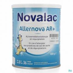 Novalac Allernova AR est un aliment pour les bébés et les enfants allergiques au lait de vache ou qui régurgitent souvent. Il s'agit d'un aliment épaissi, sans lactose, qui contient des protéines de lait de vache hydrolysées (caséine). Allernova AR peut être donné du 1er jour jusqu'à 36 mois. Au cours des 6 premiers mois de la vie, Allernova AR peut également être utilisé comme seule source de nutrition. Allernova AR peut également être utilisé pour préparer du porridge. Allernova AR contient également tous les nutriments importants dont votre enfant a besoin pour sa croissance et son développement.
