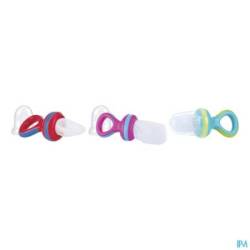 Mettez des morceaux de fruits, légumes ou biscuits dans le filet; replacez l'anneau avec le filet sur le manche. Votre petit bout peut enfin se lancer à la découverte de nouveaux goûts et textures en toute sécurité et sans risque d'étouffement. Le manche en forme d'anneau est adapté aux petites mains, mais est assez grand pour ne pas être mis en bouche. Pour une sécurité maximale, le grignoteur est pourvu d'un système de fermeture sécurisé que seul les adultes peuvent ouvrir. Le grignoteur est disponible en trois combinaisons de couleurs différentes et convient aux enfants à partir de l'âge de 6 mois.