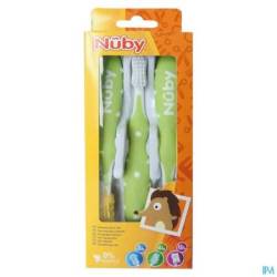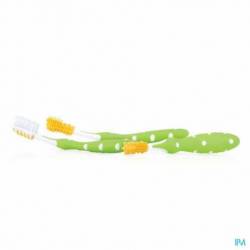 La deuxième brosse à dents est munie de lamelles en caoutchouc et peut être utilisée dès que les dents commencent à percer et que les premières dents commencent à pousser (+/- 6 mois). Les parents peuvent masser les gencives et le palais pour soulager leur enfant. Ces 2 brosses à dents peuvent être utilisées en combinaison avec le gel gingival entièrement naturel de Nûby™ Citroganix™.