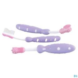Ce set de brosses à dents évolutif assure une bonne hygiène bucco-dentaire dès la naissance. Il contient une brosse à dent adaptée à chaque phase du développement bucco-dentaire de l'enfant.