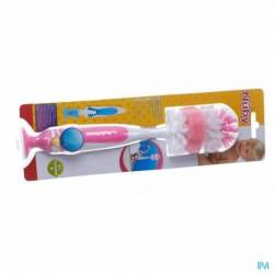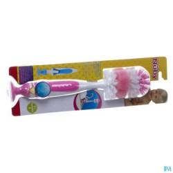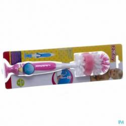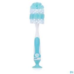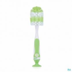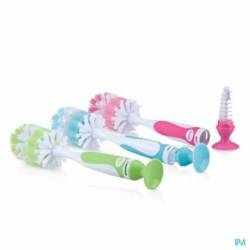 Ce goupillon Nûby possède 2 brosses différentes. La brosse à tétines peut être placée dans le manche pour plus d'aisance. Le manche est aéré permettant à la brosse à tétines de sécher entièrement et facilement. De plus le manche dispose d'une ouverture pour être accroché aisément. Les 2 brosses possèdent des poils en nylon souple et résistant pour un nettoyage efficace même pour les zones difficiles. Ce goupillon possède même une éponge à son extrémité pour pouvoir nettoyer les zones très difficiles à atteindre!