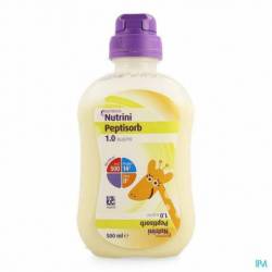 Nutrini Peptisorb est une alimentation par sonde complète, prête-àl'emploi, à base de peptides, sans fibres, pour enfants de 1 à 6 ans, ou d'un poids de 8 à 20 kg. Sans gluten. A utiliser sous surveillance médicale.
