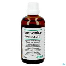 Nux vomica-Homaccord est un médicament homéopathique contenant des composants traditionnellement utilisés dans le traitement des troubles fonctionnels du foie et de l'appareil digestif, y compris la gastrite aiguë et chronique, les brûlures d'estomac, l'indigestion, les nausées, la constipation, les ballonnements et la diarrhée; la détoxication du foie et du système gastro-intestinal, comme par exemple après l'excès d'alcool, de café ou de nicotine.