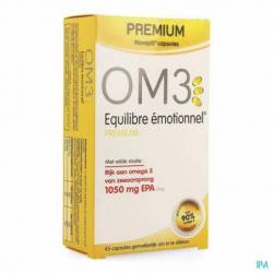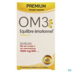 OM3 a développé une capsule spéciale, Novapill®, dont les propriétés éliminent l'arrière-goût de poisson. OM3 Équilibre émotionnel est riche en acides gras essentiels oméga 3. Les oméga 3 ne peuvent pas être synthétisés par l'organisme et sont donc considérés comme essentiels. Les acides gras oméga 3 sont dits essentiels car notre organisme ne peut pas les produire lui-même. Les capsules OM3 Équilibre émotionnel Premium contiennent une huile de poisson concentrée (90 % d'oméga 3) ; les capsules sont petites et faciles à avaler.
