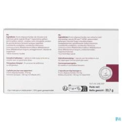 Composition : Fructo-oligosaccharides (de chicorée et de betterave), ( HPMC, gélifiant : gomme gellane, colorant : complexe cuivre-chlorophylle), amidon de pomme de terre, bactéries lactiques lyophilisées (Lactobacillus acidophilus, Lactobacillus rhamnosus, lactis, Bifidobacterium bifidum, Bifidobacterium breve, Bifidobacterium longum), anti-agglomérant : stéarate de magnésium.