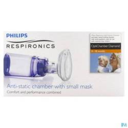 La chambre OptiChamber Diamond permet l'administration de médicaments dans les poumons. Le matériau antistatique situé à l'intérieur du tube permet à l'aérosol de rester plus longtemps en suspension, afin que le patient ait plus de temps pour l'inhaler.