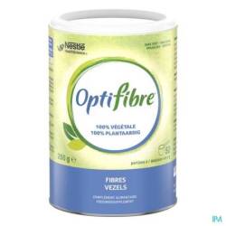 Préparation : dissoudre 1 cuillère doseuse (~5 g d'OptiFibre® contenant ~4,3 g de fibres) dans 200 ml de liquide ou 150 g de plat. Utiliser uniquement la cuillère de mesure jointe. Remuer jusqu'à ce que la poudre soit complètement dissoute. OptiFibre® peut être dissous dans des boissons et des plats chauds ou froids sans en altérer la saveur et la texture. Pour une solubilité optimale, ne pas utiliser de boissons gazeuses.
