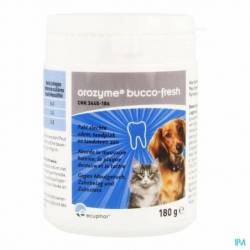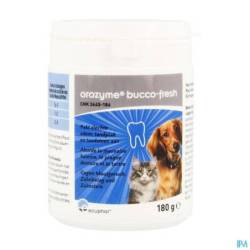 Orozyme Bucco Fresh PlaqueOff est une innovation dans le domaine de l'amélioration de la mauvaise haleine et de l'état des gencives et des dents chez les chiens et les chats. Orozyme Bucco Fresh PlaqueOff aide à prévenir l'adhérence de la plaque dentaire et détache les dépôts. Après quelques semaines de traitement, vous constaterez une amélioration de l'hygiène bucco-dentaire de votre chien ou chat.