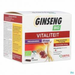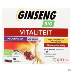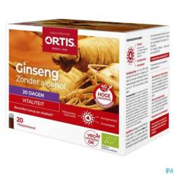 Sirop de fructose de blé* (sans gluten), sirop de tapioca*, eau, racines entières (y compris les racines capillaires) de Panax ginseng C.A. Meyer* (40 mg de ginsénosides/15 ml), gelée royale* (500 mg/15 ml), concentré de citron*. Sans conservateurs.