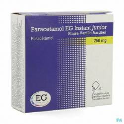 Le paracétamol fait partie du groupe des médicaments atténuant la douleur et diminuant la fièvre. Paracetamol EG Instant junior Vanille Fraise s'utilise pour diminuer la fièvre et pour soulager la douleur légère à modérée.