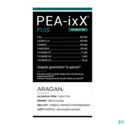 Agents de charge : sorbitol, cellulose microcristalline ; palmitoylethanolamide ; résine d'huile de boswellia (Boswellia serrata) ; extrait de grains de fenugrec (Trigonella foenum graecum) ; extrait de racine de gingembre (Zingiber officinale) ; arôme naturel : vanille ; vitamine B1 ; vitamine D3 ; vitamine B6 ; anti-agglomérant : sels de magnésium d'acides gras.