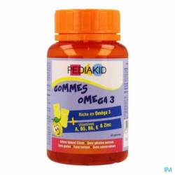 Pendant l'année scolaire, certaines périodes sont particulièrement denses et nécessitent une activité intellectuelle accrue (concentration, attention, mémoire, apprentissage...). Les Gommes Oméga 3 PEDIAKID® contiennent de l'huile de lin riche en Oméga 3, tels que l'acide alpha-linolénique, un acide gras essentiel qui participe à un développement harmonieux. Egalement riches en Vitamines E, B5, B6 et source de Vitamine A et de Zinc, elles soutiennent les fonctions cognitives telles que la concentration, la mémorisation (Zinc) et la vision (Vitamine A), contribuent à la synthèse des neurotransmetteurs et aux performances intellectuelles (Vitamines B5) mais aussi au fonctionnement normal du système nerveux (Vitamine B6). Sans gélatine, sans gluten, sans lactose, sans conservateurs et sans arôme ni colorant artificiel, les Gommes Oméga 3 PEDIAKID® offrent une formule pratique, ludique et saine, idéale pour les enfants.