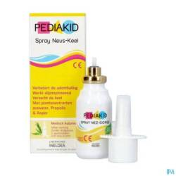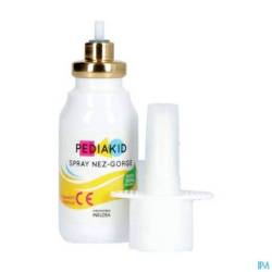 PEDIAKID® Spray Nez-Gorge est formulé à base d'une solution d'eau de mer hypertonique qui attire mécaniquement le liquide des muqueuses vers l'extérieur pour nettoyer les voies aériennes supérieures et faciliter l'évacuation des mucosités. L'extrait d'Aloe vera forme un film sur la muqueuse et la protège des irritations, pour apaiser les maux de gorge. Le Spray Nez-Gorge PEDIAKID®contient également des extraits d'Echinacée, de Propolis et du Cuivre, ainsi que des hydrolats d'Eucalyptus et de Romarin.