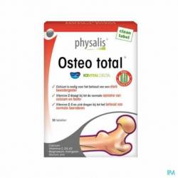 Physalis Osteo total® a été composé selon les dernières connaissances scientifiques et contient des ingrédients actifs de haute qualité et solidement étayés qui maintiennent le système osseux dans un état optimal. Physalis Osteo total® contient de l'Aquamin®, un complexe minéral "alimentaire complet" 100% naturel issu d'algues rouges, riche en calcium et à haute biodisponibilité. Le calcium est nécessaire au maintien d'un système osseux solide et est parfaitement soutenu par la vitamine D et la vitamine K2. La vitamine D contribue à l'absorption normale du calcium et du phosphore. Osteo total® contient de la vitamine K2 sous forme de MK-7 doublement enrobée et encapsulée (K2VITAL®Delta). Cette synergie est complétée par l'ajout de magnésium, de manganèse et de zinc sous une forme biodisponible. Le manganèse favorise la formation du tissu conjonctif (tel que le cartilage) et, comme le zinc et la vitamine C, contribue à la protection des cellules contre le stress oxydatif.