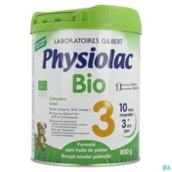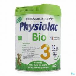 Physiolac Bio 3, formulé sans huile de palme et certifié biologique.