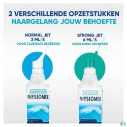 PHYSIOMER® Strong Jet est un système de lavage naturel pour le nez, recommandé en cas de gênes nasales chroniques, de gênes rhinosinusales, de congestion nasale lors d'un rhume, nez bouché ou d'une rhinosinusite, et après une chirurgie endonasale et endosinusale.