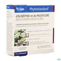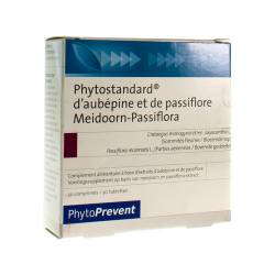 Extraits d'aubépine (Crataegus monogyna et oxyacantha L., sommités fleuries) et de passiflore (Passiflora incarnata L., hors sol) (support : fibre d'acacia), support : cellulose microcristalline, stabilisant : carboxyméthylcellulose ramifiée, anti-agglomérant :