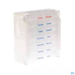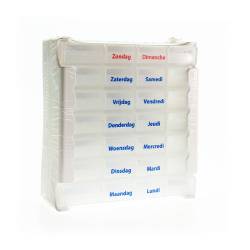 Pillbox avec système de clic. Ce pilulier comporte 7 cases pour chaque jour de la semaine. Chaque boîte de jour a 4 compartiments - matin-midi-soir-nuit