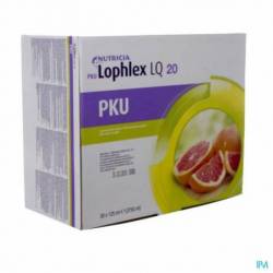 PKU Lophlex LQ 20 est une denrée alimentaire prête à l'emploi sans phénylalanine*. Il contient des acides aminés essentiels et non essentiels, des glucides, vitamines, sels minéraux et oligo-éléments.Contient de l'acide docosahexaénoïque (DHA).